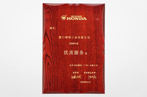 Top Ten International Brand in Auto Parts Industry in China of 2008 Awarded by the Organizing Committee of China Auto Parts Industry Awards