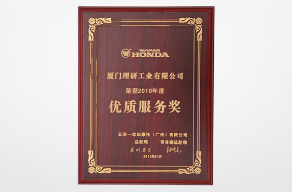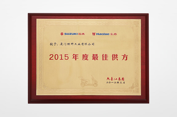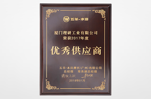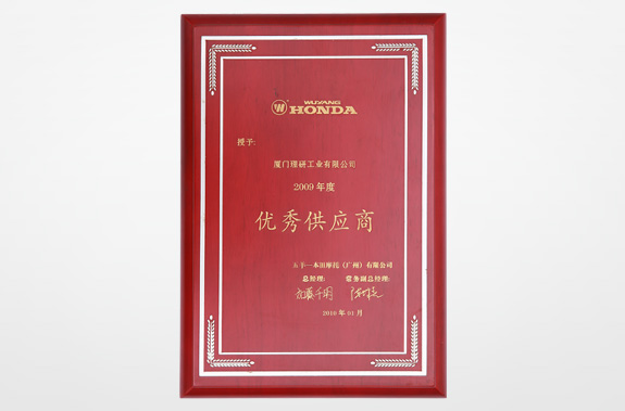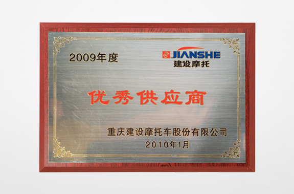 Excellent Supporting Supplier of 2009 Awarded by China Motorcycle Industry "Fengyun Series" Selection Committee of "Motorcycle Information" Magazine Office
